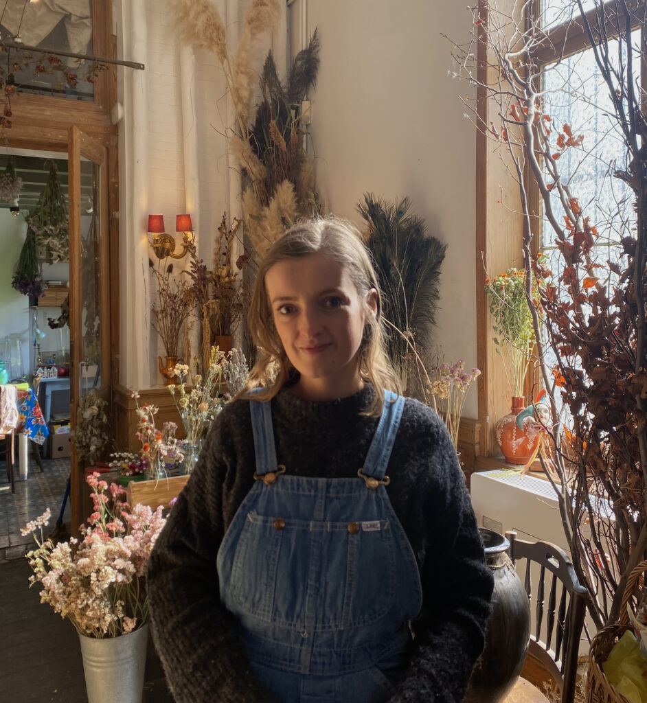 Depuis l’ouverture de sa boutique, « Versus Fleurs », rue Haute à Bruxelles, Daphné se distingue par son engagement envers des pratiques florales respectueuses de l’environnement. Fleuriste depuis 2016, suite à une reconversion professionnelle et une formation à l’école des Fleuristes de Paris. Elle a réussi à combiner son amour pour les fleurs et son combat pour l’environnement. Daphné est fondatrice de sa boutique de fleurs, ce lieu lumineux et spacieux propose une variété de jolies fleurs. Dès l’arrivée dans sa boutique, on y ressent une atmosphère calme et paisible. « Le contact avec la nature, les personnes, et la possibilité de travailler les fleurs comme une œuvre d’art, c’est ce qui me plaît », raconte-t-elle. Chaque saison offre une palette infinie de possibilités, une toile vierge que la nature lui offre pour créer. Petite, Daphné passait des heures dans la nature à contempler les fleurs, fascinée par la diversité des couleurs et des parfums. C’était pour elle, depuis petite, une évidence de devenir fleuriste.