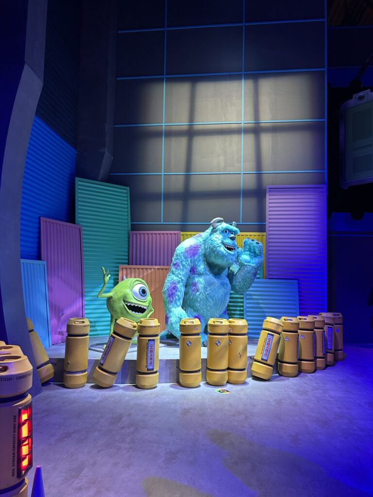 Si certaines salles nous engagent pleinement dans la magie Pixar, d’autres laissent à désirer. L’espace Monstres & Cie manque cruellement d’un élément clé : Boo. J’aurais adoré une reconstitution de sa chambre ou une porte magique à traverser. Là, la porte ne s’ouvrait même pas totalement. « Ça manque de quelque chose, laissez-moi entrer, traverser cette porte », note Amani. Je ne peux qu’acquiescer.