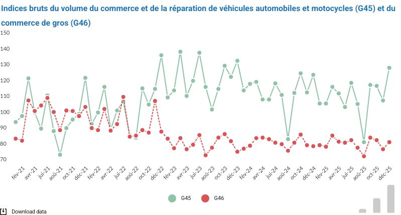 Selon Statbel, le volume des ventes de gros et de la réparation de véhicules automobiles et de motocycles a augmenté de 3,6 % en décembre 2025. Des ventes en dents de scie depuis 2021, avec notamment un volume inférieur en août 2025. Chez Carrosserie Karreveld, on ressent l’augmentation des ventes avec environ 150 voitures qui sortent chaque semaine, dont plus ou moins 20 ont été réparées par Agostino.