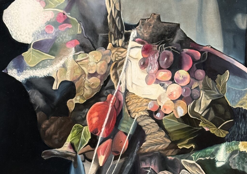 Dans la salle, les déplacements semblent plus fluides, moins précipités. Chaque personne est là pour une raison précise. Un homme regarde de près deux tableaux côte à côte, similaires mais distincts. Un tableau composé d’une main de laquelle sortent des plumes ou des ailes et d’autres détails interprétés différemment par chacun. Il regarde droit devant lui, puis s’approche, plisse les yeux. On sent son envie de comprendre, de décortiquer l’histoire et l’ambiguïté délibérée de l’œuvre. Il y passe plusieurs longues minutes. « Chaque œuvre mérite son moment de déchiffrage », glisse-t-il, sans quitter l’image du regard. Il s’éloigne et reste immobile comme s’il refusait de passer à autre chose. Il a une autre image de l’œuvre qu’au début.