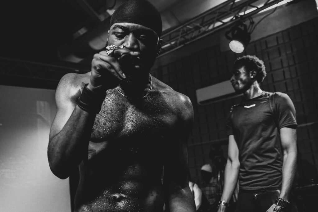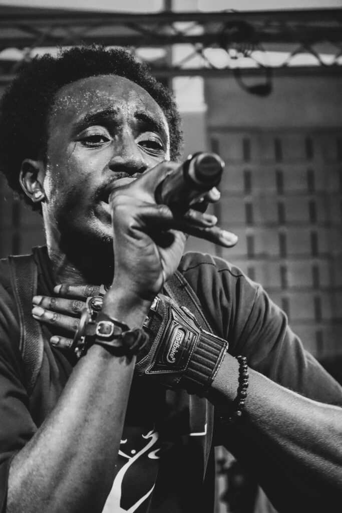 Sur scène, les artistes occupent tout l’espace. Micro serré dans la main, ils avancent, reculent, regardent le public. Derrière eux, un DJ manipule ses platines et enchaîne les transitions. Les morceaux s’enchaînent avec fluidité.