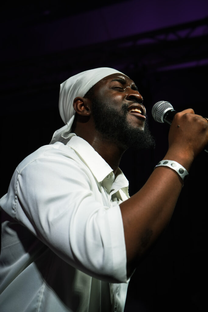 Avec Kazady, l’atmosphère devient plus douce. Pendant son passage, il descend à plusieurs reprises de la scène pour offrir des fleurs à des personnes dans le public. Les sourires apparaissent immédiatement dans la foule. Un moment inattendu, presque intime.